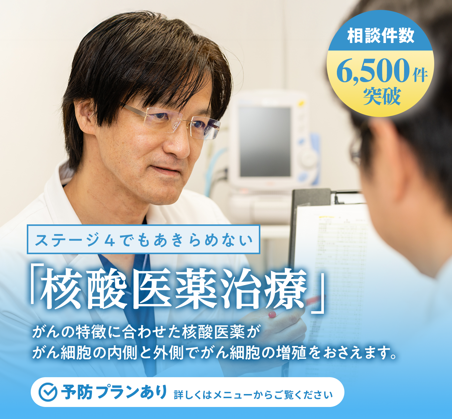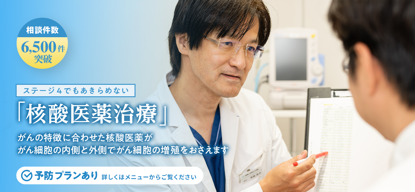 患者さまの病状に合わせて、それぞれの患者さまに合わせた次世代の治療法(核酸医薬・BCG-CWSがんワクチン・6種複合免疫・がん光免疫治療・コロイド治療)を提案します。