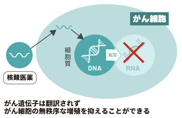 最先端の核酸医薬を用いてがん細胞の内側と外側でがん細胞の増殖をブロックします。